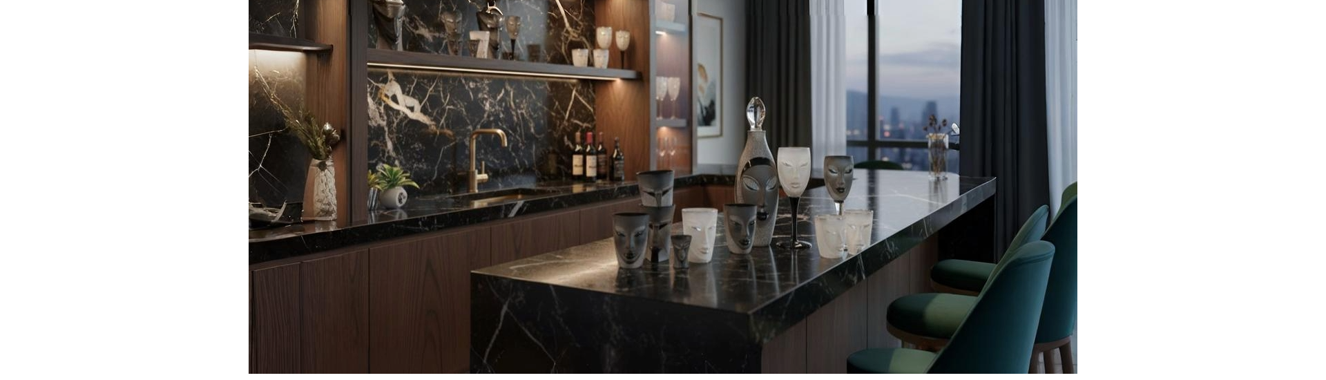 Pair stylish bar accessories with sculptures and art objects for a great look.