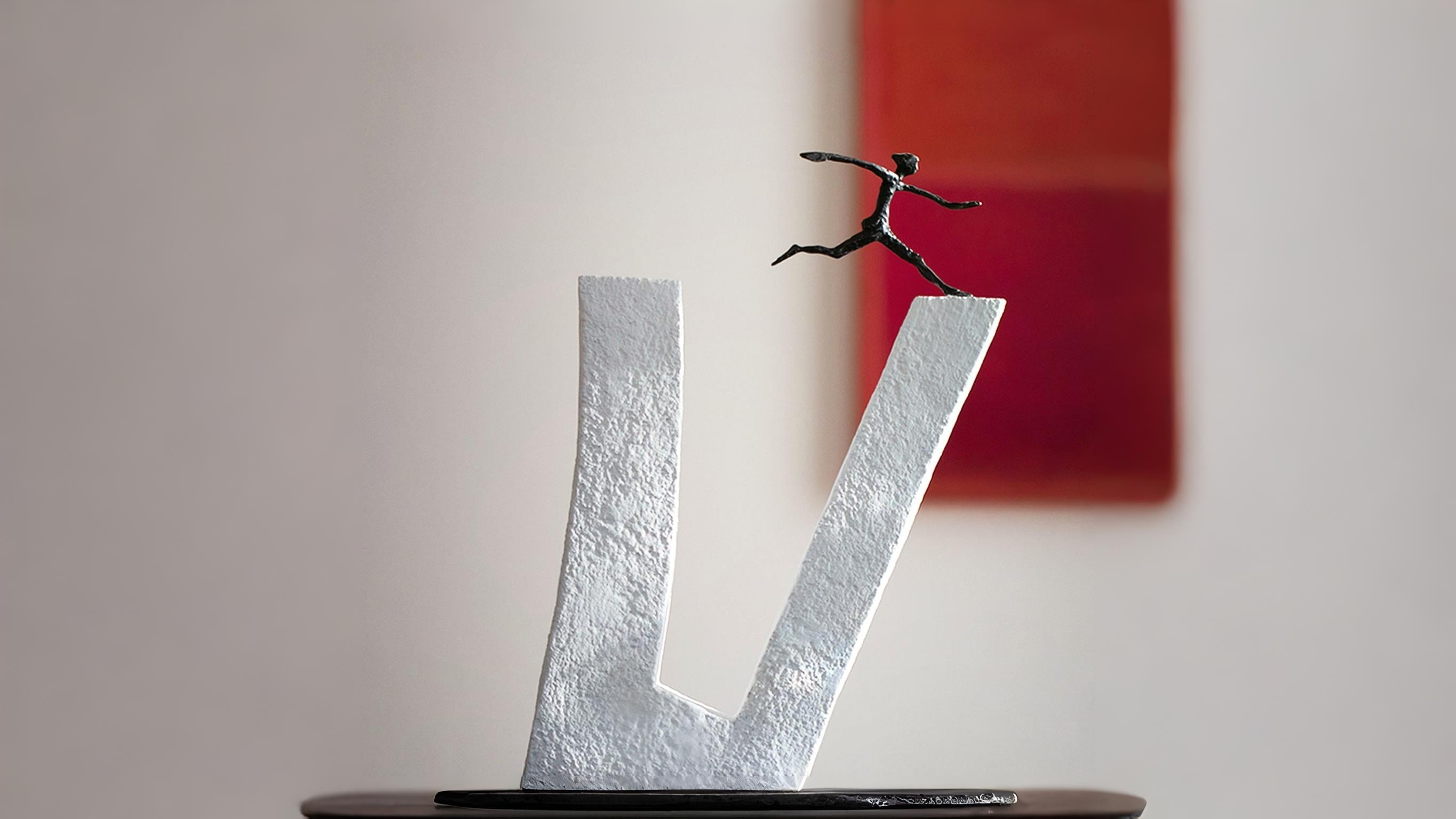 Some pieces don’t just sit pretty – they speak. This is one such powerful sculpture. Cast in rugged stone and crowned with a bold bronze figure, it perfectly captures the spirit of taking chances and chasing dreams. The miniature bronze figure, with arms stretched forward and legs mid-leap, defies gravity, meticulously frozen in a moment of sheer boldness. This stunning contrast between the coarse cast stone base and the delicate, exquisitely polished bronze figure vividly translates timeless values into a modern artistic form. It serves as a daily reminder that progress belongs to the brave, and that the biggest jumps often begin with a quiet, internal decision: to try.