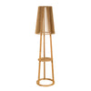 Teak solar floor lamp cum side table with a pleated shade on a white background