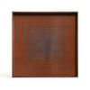 Bring a bold artistic touch to your decor with this striking tray designed in Belgium by the renowned European brand Ethnicraft. Crafted with silk-screen printed glass and framed in a rich walnut wooden rim, this statement piece features a hypnotic square pattern in deep pumpkin tones. Its geometric design blends art with function, making it ideal for styling centre tables or as a base for displaying candles, artefacts, or barware.