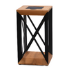 Wooden solar lanters with black metal frame on a white background